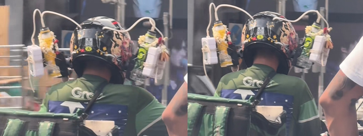 ผู้ใช้ TikTok @roon_wittayanont ได้เผยภาพไรเดอร์คนหนึ่ง ที่ทำคนฮือฮากันทั้งถนน กับนวัตกรรมหมวกกันน็อกแบบใหม่ ทั้งล้ำและปรับตัวเข้ากับอากาศในไทย ดัดแปลงโดยมีการติดตั้งระบบหลากหลาย มีทั้งกรองฝุ่น ระบายความร้อน พร้อมฟังก์ชันดูดน้ำ ช่วยเพิ่มความเย็นระหว่างเผชิญกับความร้อน ขับขี่ไปส่งของได้อย่างสบาย ไอเดียเข้าท่าจนถูกใจชาวเน็ตกันเป็นแถว