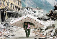 ส่วนพิบัติภัยทางดิน จากเหตุธรณีไหวที่เสฉวน แม้จะเป็นเรื่องสุดวิสัยทางธรรมชาติ แต่ชื่อเสียงของจีนหม่นหมองไปด้วยในกรณีที่พ่อแม่ของเหยื่อเด็กน้อยที่เสียชีวิตจำนวนมากฮือประท้วงราชการที่ก่อสร้างโรงเรียนไม่ได้มาตรฐาน ใช้วัสดุด้อยคุณภาพ เป็นเหตุให้ถล่มลงมาทับเด็กตายได้ง่ายดาย นอกเหนือจากเรื่องดินน้ำลมไฟ อุปสรรคใหญ่ทางการเมืองก็โหมเป็นระลอก