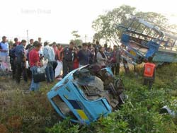 รถบัสนำนักเรียนเข้าค่ายลูกเสือเบรกแตกชนบ้านดับ1ที่เมืองคอน