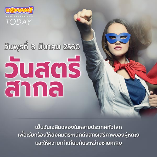 วันสตรีสากล (International Women's Day) ตรงกับวันที่ 8 มีนาคม ของทุกปี ซึ่งเป็นวันที่เหล่าสตรีจากทั่วโลก ไม่ว่าจะเชื้อชาติ ศาสนา อาชีพใด จะร่วมเฉลิมฉลองความเสมอภาคที่ได้รับมา และเป็นการแสดงให้เห็นถึงความเท่าเทียมกันในสังคมอีกด้วย
