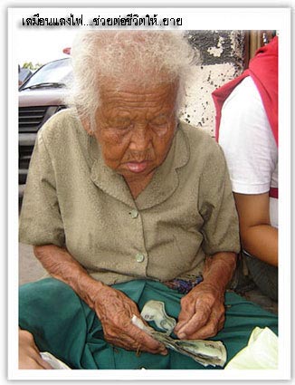 "ที่ผ่านมารู้สึกท้อแท้กับชีวิต แต่ก็ต้องสู้ต่อและอดทนจนกว่าจะหมดเรี่ยวแรง สิ่งที่อยากได้ตอนนี้ เป็นเพียงอาหารและน้ำประทังชีวิตเท่านั้นไม่ต้องการทรัพย์สินเงินทองอะไรมากมาย เพราะไม่รู้จะร่ำรวยไปทำไม ขอเพียงมีชีวิตรอดไปวันๆ ก็พอ แต่ยายยึดคติว่า ชีวิตทุกคน ถึงแม้จะยากจนหรือมั่งมีแค่ไหน ก็ต้องสู้ จะมานั่งงอมืองอเท้าอยู่เฉยๆ ไม่ได้" ยายทอง กล่าว