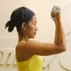 นั่ง หรือ ยืนได้ตามถนัด ยกแขนขึ้นเหนือศีรษะ ในมือถือดัมเบลล์ หรือขวดน้ำ พับไหล่ให้แขนท่อนบนแนบชิดศีรษะ แขนท่อนล่างพับลงมา