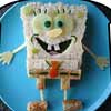 เขาเริ่มจากอาหารทานง่ายอย่างแซนวิช โดยใช้ขนมปัง ผักสด แฮม และชีส หั่น ตัด เด็ด ฉีก ประกอบให้เป็นตัวการ์ตูนสปองบ๊อบ