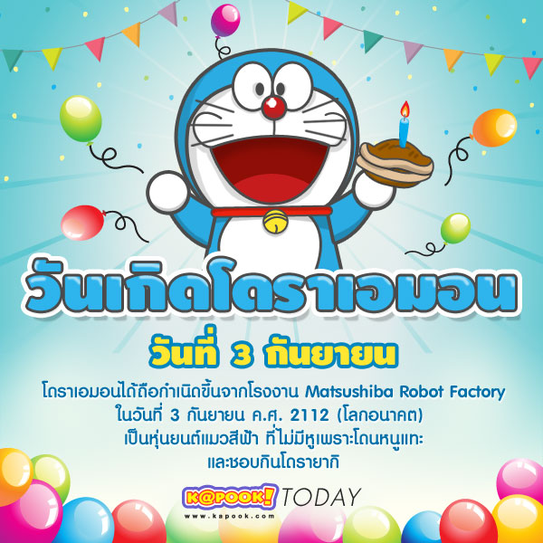 เอ้า... รู้วันเกิดโดราเอมอนกันแล้ว ก็มาแฮปปี้เบิร์ธเดย์ให้เจ้าเหมียว โดราเอมอน กันหน่อยจ้า