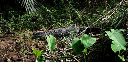 จระเข้เป็นสัตว์เลื้อยคลานขนาดใหญ่ในวงศ์ Crocody lidae ชอบอาศัยบริเวณป่าริมน้ำ ผิวหนังแข็งเป็นเกล็ด (osteoderm) ปากยาวและปลายปากนูนสูงขึ้นเป็นช่องเปิดของรูจมูก เรียกว่า ก้อนขี้หมา หางแบนยาวใช้โบกว่ายน้ำเพราะชอบหากินในน้ำ แต่หากในน้ำไม่มีอาหาร จะขึ้นมาหาอาหารบนบก เมื่ออิ่มแล้วจะชอบขึ้นมาผึ่งแดด หรืออาบแดดเพื่อความอบอุ่น เพราะเป็นสัตว์เลือดเย็น