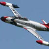 ในช่วง 3 ปีแรกของฝูงบิน ธันเดอร์เบิร์ด Thunderbirds ได้ทำการบินด้วยเครื่องบินแบบ F - 84 ต่อสายตาผู้ชมกว่า9ล้านคน ในการแสดงการบิน 222 ครั้ง รวมทั้งประเทศในแถบอเมริกากลางและอเมริกาใต้ ในเดือนมิถุนายน 2499 ฝูงบิน ธันเดอร์เบิร์ด Thunderbirds ได้ย้ายที่ตั้งไปอยู่ ณ ฐานทัพอากาศ Nellis มลรัฐ Nevada และได้ทำการเปลี่ยนแบบจากเครื่องบินแบบ F - 84 เป็นเครื่องบินแบบ F - 100 Super Sabre ซึ่งเป็นเครื่องบินขับไล่ความเร็วเหนือเสียงแบบแรกของโลกและได้ทำหน้าที่ในฝูงบินอยู่ถึง 13 ปี ทั้งแบบ F - 100 C และ D ได้ทำการแสดงการบินผาดแผลงรวมกันกว่า 1,100 ครั้ง ในประเทศตั้งแต่ตะวันออกไกลถึงอาฟริกาเหนือ