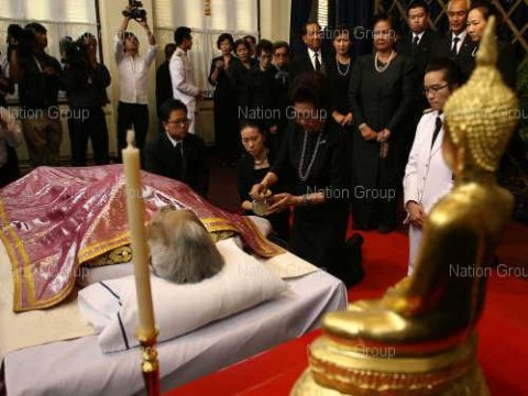 ด้านกลุ่มพรรคขัตติยะธรรมของ พล.ต.ขัตติยะ สวัสดิ์ผล ก็มาร่วมในงานนี้ด้วย และมูลนิธิ 111 พรรคไทยรักไทย ก็นำพ่วงหรีดที่ทำจากดอกไม้สีแดงทั้งพวงมามอบเพื่อแสดงความไว้อาลัย และนายบุญศรี ศรีกอง สมาชิกสภาโจ๊กผู้แสดงเป็นนายสมัคร ก็มาร่วมไว้อาลัยด้วย ซึ่งบรรยากาศในขณะนี้เป็นไปด้วยโศกเศร้า โดยมีประชาชนบางคนถึงกับหลั่งน้ำตาเมื่อได้รดน้ำศพนายสมัคร