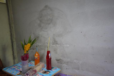 เมื่อวันที่ 15 ธันวาคม ผู้สื่อข่าวได้รับแจ้งจากชาวบ้านใน อ.บางปะหัน จ.พระนครศรีอยุธยา ว่าที่บ้านเลขที่ 1/8 ม.8 ต.พุทเลา อ.บางปะหัน มีภาพคล้ายนักรบโบราณปรากฏอยู่ที่ฝาบ้าน จึงเดินทางไปตรวจสอบ พบว่า บ้านหลังดังกล่าวเป็นบ้านใต้ถุนสูง ด้านล่างกั้นเป็นห้องเอาไว้จำนวน 3 ห้อง ภายในบ้านมีชาวบ้านจำนวนมากจับกลุ่มนั่งพูดคุยกันอยู่ ตรวจสอบภายในห้องกลาง มีโต๊ะตั้งอยู่มีกระถางธูปดอกไม้ ขวดน้ำอัดลม ที่ฝาผนังมีรอยคราบน้ำปรากฏอยู่อย่างชัดเจน คล้ายนักรบโบราณรูปร่างกำยำมีหนวดเครา สวมหมวก ยืนถือดาบครึ่งตัว