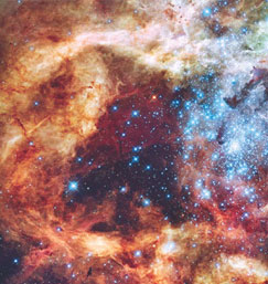 1. ก่อร่างสร้างดาวภาพจากกลุ่มเนบิวลา หรือ กลุ่มก๊าซและฝุ่นผงในอวกาศ มีชื่อว่า "30 โดเรดัส เนบิลวา" ภายในกำลังเกิดการก่อตัวของดาว "อาร์136" (กล้องโทรทรรศน์อวกาศฮับเบิล)