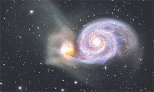 10. กาแล็กซี่คู่หูความงามของกาแล็กซี่ หรือ ดาราจักร 2 แห่งที่อยู่เคียงคู่กัน นั่นคือ "เอ็นจีซี 5194" ซึ่งมีขนาดใหญ่กว่า และ "เอ็นจีซี 5195" ดูเผิน ๆ อาจเหมือนอยู่ใกล้ๆ กัน แต่ความจริงแล้วศูนย์กลางดาราจักรทั้ง 2 แห่งนี้ห่างกันราว ๆ 31 ล้านปีแสง