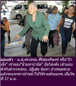 เมื่อเวลา 11.00 น. วันที่ 27 ม.ค.ที่บก.ปคบ. น.ส.ศรวรรณ ศิริสุนทรินทร์ หรือ ป้าเช็ง อายุ 72 ปี เจ้าของธุรกิจน้ำมหาบำบัด รักษาครอบจักรวาล เดินทางเข้าพบพล.ต.ต.จตุรงค์ ภุมรินทร์ ผบก.ปคบ.เพื่อรับทราบข้อกล่าวหาเพิ่มเติมอีก 4 ข้อหา คือโฆษณาขายยาทางวิทยุโทรทัศน์โดยไม่ได้รับอนุมัติข้อความ เสียง หรือภาพ ที่ใช้ในการโฆษณาจากผู้อนุญาต, โฆษณาขายยาที่แสดงสรรพคุณยาว่าสามารถบำบัด บรรเทา รักษา หรือป้องกันโรค หรืออาการของโรค ที่รัฐมนตรีประกาศห้าม ตาม พ.ร.บ.ยา พ.ศ.2510, ประกอบกิจการและดำเนินการสถานพยาบาลโดยไม่ได้รับอนุญาต ตามพ.ร.บ.สถานพยาบาล พ.ศ.2541 และข้อหาประกอบโรคศิลปะ โดยไม่ขึ้นทะเบียนและรับใบอนุญาต ตามพ.ร.บ.ประกอบโรคศิลปะ พ.ศ. 2542 โดยมี ภญ.วีรวรรณ แตงแก้ว รองเลขาธิการคณะกรรมการอาหารและยา (อย.) และ น.พ.ธเรศ กรัษนัยวิวงศ์ ผอ.สำนักพยาบาลและการประกอบโรคศิลปะ มาร่วมการสอบสวนด้วย