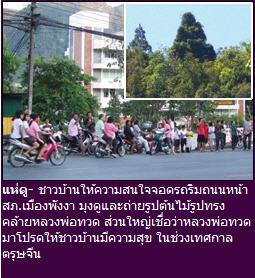 ประชาชนจำนวนมากแห่ชมต้นไม้รูปทรงคล้ายหลวงปู่ทวด กลางเมืองพังงา จนรถติดหนึบ ตำรวจจราจรต้องออกมาอำนวยความสะดวก บางคนถึงกับพนมมือไหว้เพื่อความเป็นสิริมงคล ในขณะที่บางคนก็ตีเป็นตัวเลขกันตามสูตร แห่กันไปชมต้นไม้ตลอดทั้งวัน ลือหลวงปู่ทวดมาให้โชคลาภในช่วงวันตรุษจีน ขณะนี้ยังไม่รู้ว่าต้นไม้ประหลาดดังกล่าวเป็นต้นอะไร เนื่องจากอยู่บนเขาสูงชัน เดินทางขึ้นไปยากลำบาก