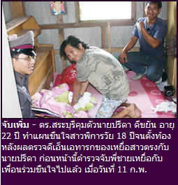จับอีกราย ผู้ต้องหาคดีข่ม ขืนสาวพิการจนตั้งท้อง คราวนี้ตำรวจได้พ่อตัวจริงของเด็ก ใช้ดีเอ็นเอมัด เจ้าตัวสาร ภาพลงมือข่มขืนจริง เผยเป็นคนงานวิดบ่อปลาทำงานให้พ่อเหยื่อสาวพิการ อ้างดื่มเหล้าเมาขึ้นไปเอาที่ชาร์จแบตเตอรี่มือถือเห็นเหยื่อสาวพิการนอนโป๊ พร้อมยอมรับเด็กเป็นลูก แต่ไม่เอาแม่
