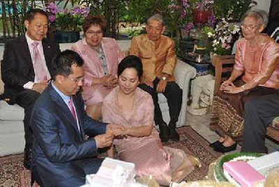 สำหรับของหมั้นในวันนี้ นพ.พฤฒิชัย กล่าวว่า ไม่ทราบรายละเอียดมากนัก เป็นเรื่องของผู้ใหญ่ที่จัดให้ ประกอบด้วย แหวน เครื่องประดับ ทองและเงินสดอีกจำนวนหนึ่ง