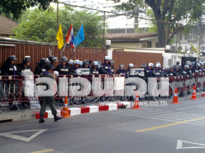 12.11 น. ทหารที่ทำเนียบฯ ซักซ้อมแผนรับมือฝูงชน เพื่อป้องกันกลุ่มเสื้อแดงบุกมาปิดล้อม ขณะการจราจรโดยรอบยังเคลื่อนตัวได้