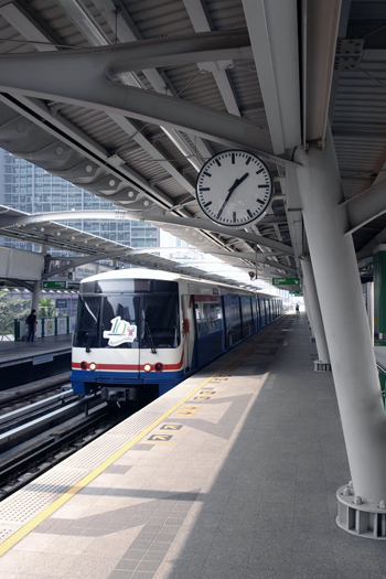 รถไฟฟ้า BTS สายสุขุมวิท ให้บริการทุกสถานี โดยรถเที่ยวแรกเวลา 06.00 น. และเที่ยวสุดท้ายจะออกจากสถานีปลายทาง เวลา 18.00 น.