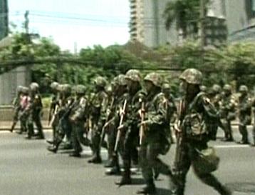 ที่ผ่านมา ทหารได้สลายผู้ชุมนุมกลุ่มคนเสื้อแดงที่ขว้างปาสิ่งของ