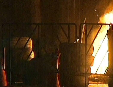 สกัดรถส่งเสบียงแดง - ม็อบเผารถขยะ - ตู้โทรศัพท์ (ไอเอ็นเอ็น)