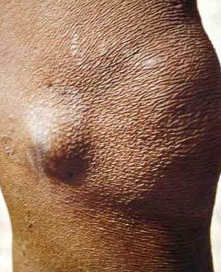 ลักษณะบริเวณที่ริ้นดำฝังตัวอยู่