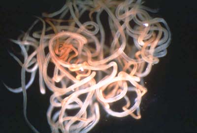 แต่สำหรับตัวอ่อนของพยาธิแมลง ริ้นดำ ที่มาฟักตัวอยู่ในคน จะมีผลต่อผิวหนัง ทำให้ต่อมน้ำเหลืองบวม อักเสบ อาจกลายเป็นโรคเท้าช้างได้ หรือหากลุกลามถึงปอด ตับ ก็จะทำให้ตายได้ และถ้าไปถึงตา มันจะทำลายเนื้อเยื่อและประสาทตาทำให้ตาบอด สำหรับในประเทศไทยยังไม่มีผู้ใดศึกษาพยาธิวิทยาของริ้นดำว่านำโรคอะไร