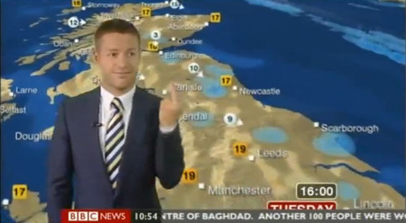 สำนักข่าว บีบีซี ออกมาขอโทษ หลังจาก นายโทมาสซ์ เชเฟอร์เนคเกอร์ ผู้อ่านข่าวพยากรณ์อากาศ ชูนิ้วกลาง โชว์ให้ผู้ชม หลังจากที่ ผู้ประกาศข่าวหลัก นายไซมอน แมคคอย พูดจบ และส่งคิวเข้ารายงานพยากรณ์อากาศให้ แต่ โทมาสซ์ ดัน ชูนิ้วกลางใส่ และพยายามนำมือมาไว้บริเวณคาง เพื่อกลบเกลื่อน เนื่องจาก ภาพไม่เหมาะสมถูกแพร่ออกอากาศไปแล้ว