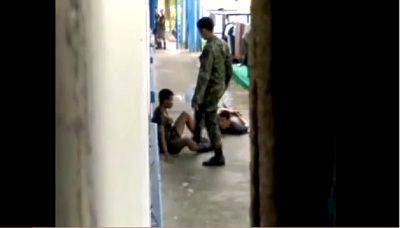 ภาพที่ปรากฎในคลิปดังกล่าว ถูกแอบถ่ายจากช่องว่างที่พอให้มองเห็นการกระทำต่าง ๆ ได้ชัดเจน เริ่มต้นที่พลทหาร 2 นาย กำลังถูกทำโทษ คนหนึ่งกำลัง สก็อตจัมพ์ ส่วนอีกคนนอนคว่ำกับพื้น เอามือไพล่หลัง และใช้หน้าอกถัดกับพื้น โดยที่มีผู้บังคับบัญชาคอยคุมอยู่ใกล้ ๆ
