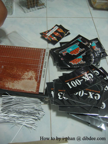 รูปที่ต้องการนำมาทำ ( รูปวาดหรือรูปถ่ายก็ได้ ) ขนาด 4x6, กระดาษอาร์ตมัน 210 แกรม กระดาษไม่ค่อยสันทัด แป้นก็ถามโรงพิมพ์มาอีกทีจ้ะ เพราะให้เค้าพิมพ์ควายน้อยกะเส้นบรรทัด ถ้าทำใช้ไม่เยอะ แนะนำให้ซื้อตามร้านเครื่องเขียน เลือกแบบที่ไม่หนามาก มาตัดเองดีกว่า