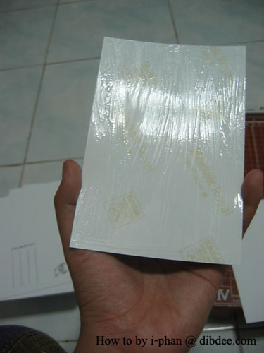 ขั้นตอนนี้การวางรูปกับกระดาษด้านหลัง พยายามอย่าให้เลื่อมกันมาก เล็งให้กลาง ๆ เข้าไว้ วางประกบกันเมื่อไหร่ จะติดกันเร็วมาก ถ้าดึงเปลี่ยนตำแหน่งอาจจะขาดหรือเป็นขุย ๆ