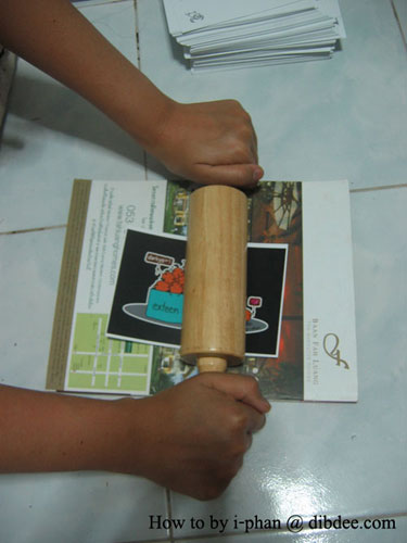ขั้นตอนการรีดฟองอากาศด้วยไม้รีดแป้ง ต้องไวหน่อยนะ ถ้ากระดาษติดกันสนิทจะไล่ฟองอากาศออกลำบากหรืออาจจะไม่ได้ ทำให้การ์ดเราโป่งในที่สุด เสี่ยงเสียหายสูงมาก ใช้เองยังไม่เท่าไหร่ ทำขายโปรดระวัง!!