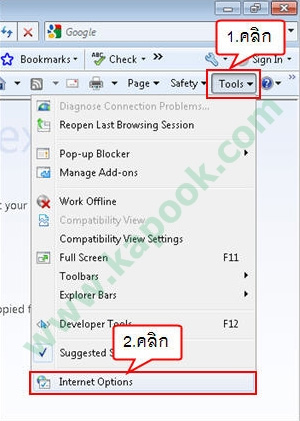 1. เปิดIE (Internet Explorer) จากนั้นให้ทำการตั้งค่าเป็นภาษา English ก่อน โดยคลิกที่ Tools => คลิกที่ Internet Options
