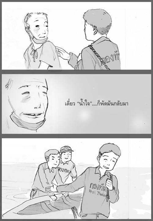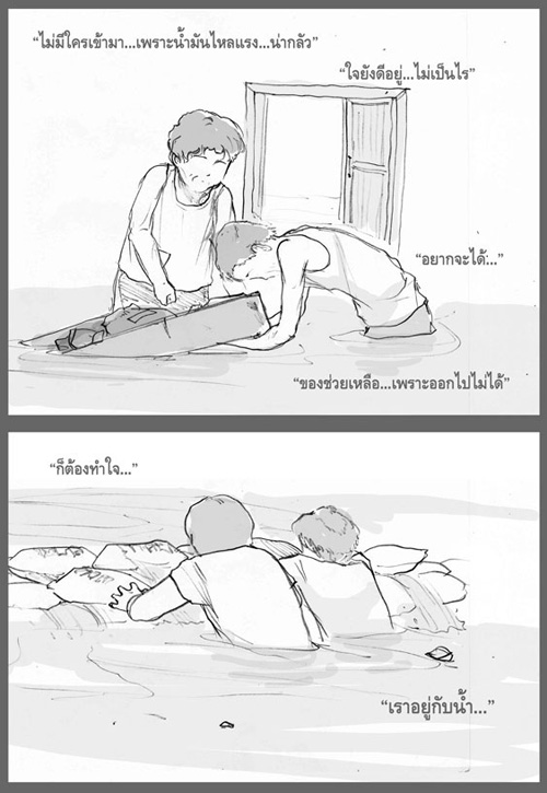 แม้ว่า "น้ำท่วม" จะได้พัดพาเอา "ความเศร้า" และ "ความสิ้นหวัง" มายังผู้ประสบภัย แต่อีกด้านหนึ่ง ยังมีบางสิ่งบางอย่างที่ได้พัดพาตามมากับสายน้ำ และเป็นสิ่งที่ทุกคนล้วนปรารถนาที่จะได้เห็นในยามเกิดวิกฤติการณ์เช่นนี้