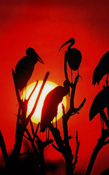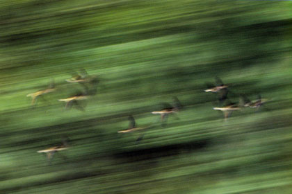 นอกจากสภาพแวดล้อมแล้ว ตัวนกและพฤติกรรมของนกก็เป็นอีกหนึ่งตัวช่วยที่ทำให้ภาพกว้างๆ ดูน่าสนใจขึ้นมาได้ โดยเฉพาะอย่างยิ่งกับนกที่มีพฤติกรรมรวมฝูง นกทุ่ง นกน้ำ ที่ออกหากินในที่โล่งจะเข้าใกล้ได้ยาก เพราะมองเห็นเราได้ในระยะไกล ซึ่งเรามักต้องถ่ายออกมาในแบบกว้างๆ โดยเฉพาะคนที่มีเลนส์สั้นๆ ควรยาวโฟกัสไม่สูงนัก การถ่ายภาพนกที่อาศัยอยู่รวมกัน เป็นฝูงให้น่าสนใจนั้น เราสามารถใช้การเทคนิค Repetition หรือการทำซ้ำ มาใช้สร้างความน่าสนใจให้กับภาพได้