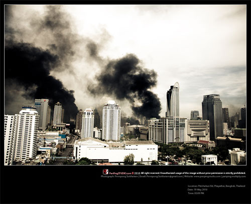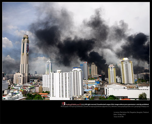 10. เหตุการณ์ความรุนแรงในประเทศไทย เมื่อเดือนพฤษภาคมที่ผ่านมา ในที่สุดเหตุการณ์ความรุนแรงจากกลุ่มคนเสื้อแดงก็ติดโผเป็นหนึ่งในสุดยอดเหตุการณ์ระดับโลกปีนี้ไปอย่างไม่ต้องสงสัย จากการเผายางรถยนต์ เผาสถานที่ต่าง ๆ ทำให้บ้านเมืองวุ่นวายไม่น้อย อีกทั้งยังทำให้มีผู้เสียชีวิตและสูญหายอีกมาก ทำให้เหตุการณ์นี้กลายเป็นเหตุการณ์ที่รุนแรงและติดหนึ่งใน 10 เหตุการณ์เด็ด ที่ทั่วโลกต้องจดจำ
