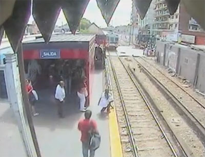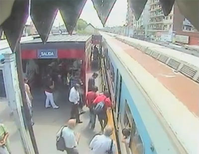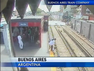 สำนักข่าวต่างประเทศ เปิดเผยคลิปภาพนาทีระทึก ที่เกิดขึ้นในสถานีรถไฟแห่งหนึ่งของกรุงบัวโนสไอเรส ประเทศอาร์เจนตินา เมื่อสตรีรายหนึ่งหย่อนตัวลูกสาวของเธอลงไปในช่องใต้ชานชาลารถไฟ เพื่อหลบเลี่ยงการจ่ายค่าตั๋ว แต่ขณะที่เธอกำลังจะลงไปด้วยนั้น ปรากฎว่ามีรถไฟขบวนหนึ่งกำลังจะเข้าสู่สถานี ทำให้เธอลงไปไม่ทัน และเด็กหญิงต้องอยู่เบื้องล่างเพียงลำพัง โดยที่ไม่มีใครทราบชะตากรรมได้