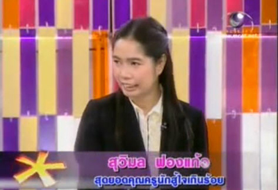 และนี่ก็คือเรื่องราวครูสุวิมล ฟองแก้ว ครูยอดนักสู้ ที่ทุ่มเทแรงกาย แรงใจ อย่างแรงกล้า ในการอบรมลูกศิษย์ให้มีความรู้ และเป็นคนดีของสังคม โดยที่ความพิการทางกายของเธอมิได้เป็นอุปสรรคขวางกั้นจิตวิญญาณของความเป็นครูเลย ใครที่กำลังท้อแท้กับอุปสรรคต่าง ๆ ลองดูเรื่องราวของครูสุวิมลเป็นตัวอย่าง แล้วลุกขึ้น "สู้" อีกครั้งกันเถอะค่ะ