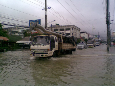 น้ำท่วมนครศรีธรรมราชเมื่อช่วงเช้าที่ผ่านมาของวันนี้ (26 มีนาคม) ผู้สื่อข่าวได้รับรายงานว่า ตั้งแต่ช่วงเช้ามืดที่ผ่านมา มีน้ำจากเทือกเขาได้ทะลักเข้าท่วมในหลายอำเภอของจังหวัดนครศรีธรรมราช ภายหลังที่มีปริมาณน้ำฝนตกลงมาตลอดหลายวัน ส่งผลให้น้ำจากเทือกเขาไหลเข้าเมือง ถนนหนทางบางเส้นถูกตัดขาด ถนนเลียบตลิ่ง ก็ไม่สามารถสัญจรได้ โดยระดับน้ำมีระดับสูงขึ้นอย่างรวดเร็ว ถนนสายหลักในเขตเทศบาลหลายสาย รถเล็กไม่สามารถสัญจรไปมาได้ เนื่องจากมีระดับน้ำสูง ประมาณ 30-50 เซนติเมตร การสัญจรไปมา กลายเป็นอัมพาตเกือบทั้งเมือง