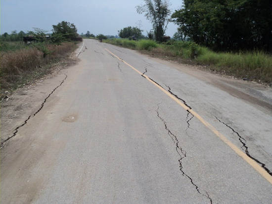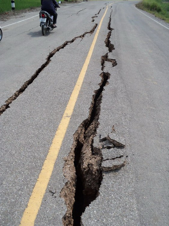 โดยภาพต่อไปนี้ เป็นภาพบนถนนแม่สาย-เชียงแสน และพื้นที่ใกล้เคียงใน อ.แม่สาย ซึ่งจากภาพจะพบว่าถนนหนทางหลายแห่งเกิดรอยร้าว ได้รับความเสียหายเป็นทางยาว ทั้งยังมีความลึกและกว้างมาก รวมทั้งผิวยางมะตอยของถนนแตกออกจากกันเป็นทางยาวอย่างชัดเจน