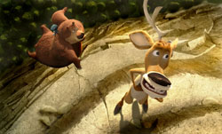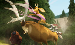 เอเลียต (ให้เสียงพากย์โดย แอชตัน คุทเชอร์) เป็นกวางผอมโซ จอมจ้อที่มาถึงเมืองแห่งนี้ในสภาพสลบไสล เขากวางของเอเลียตหายไปหนึ่งกิ่ง และยังถูกมัดติดอยู่กับหลังคารถบรรทุก ที่เป็นของนักล่าสัตว์ตัวยงอย่าง ชอว์ (ให้เสียงพากย์โดย แกรี ซีนิส) เมื่อเอเลียตฟื้นขึ้นมา เขาก็อ้อนวอนให้บู๊คแก้มัดเขา และบู๊คก็ไม่อาจทำใจเมินคำขอร้องที่พ่นรัวเป็นปืนกลของเอเลียตได้ จนเขาต้องใจอ่อนแก้มัดให้เจ้ากวางเคราะห์ร้ายตัวนี้เสีย แต่ถึงกระนั้น ราวกับจะเป็นข้อพิสูจน์ว่า ทำดีได้ชั่ว เอเลียตได้ตามร่องรอยของบู๊คไปจนถึงบ้าน และล่อลวงให้เขาออกไปซ่าส์ในเมืองซักคืน ซึ่งก็เป็นผลให้ทั้งคู่ถูกปล่อยป่า