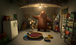 บู๊ค (ให้เสียงพากย์โดย มาร์ติน ลอว์เรนซ์) มีชีวิตที่ผาสุกแสนสบาย ในเมืองทิมเบอร์ไลน์อันเงียบสงบ หมีกรีซลีแสนเชื่องมีความสุขสบายดีทุกอย่าง ภายใต้การดูแลของคุณแม่อุปถัมภ์ เบธ (ให้เสียงพากย์โดย เด็บบรา เมสซิง) ผู้พิทักษ์ป่าน้ำใจงาม ที่ช่วยชีวิตเขาตั้งแต่เขายังเป็นลูกหมีตัวกะเปี๊ยก บู๊คโด่งดังในฐานะดาราของรายการโชว์เกี่ยวกับธรรมชาติ ที่เบธจัดขึ้นในโรงละครของเมือง และในโรงรถที่ปรับปรุงใหม่ของเบธนั้นเอง บู๊คก็ได้สนุกสนานกับรายการโทรทัศน์โปรดของเขา กินอาหารวันละแปดมื้อ และนอนซุกตัวอยู่ในเตียงนุ่มๆ กับดิงเคลแมน ตุ๊กตาหมีของเขาทุกคืน ใช่แล้ว บู๊คดูเหมือนจะมีชีวิตที่สมบูรณ์แบบจริงๆ จนกระทั่งเอเลียตปรากฏกายขึ้น