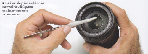ใช้ผ้าเช็ดเลนส์ที่ไม่ได้มาตรฐาน ซึ่งอาจทำให้ผิวเลนส์เป็นรอยได้ ต้องใช้ผ้าไมโครไฟเบอร์เนื้อนุ่มเท่านั้น และผ้าจะต้องสะอาดโดยเก็บในของกันฝุ่นเมื่อใช้เสร็จทุกครั้ง เพราะฝุ่นทรายที่ติดบนผ้าอาจทำให้เลนส์เป็นรอยขูดขีดได้