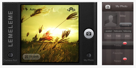 LemeLeme เป็นแอพพลิเคชั่นที่มีลักษณะการใช้งานคล้ายกับ "Instagram" แต่มีลูกเล่นในการปรับแต่งรูปมากกว่า มี Interface ที่สวยงาม นอกจากนั้นยังสามารถใส่ Tag ได้ เสร็จแล้วเลือกที่จะอัพโหลดผ่าน Social media ดัง ๆ ได้หมดทั้ง Facebook, Twitter, Flickr, Picasa ฯลฯ หรือจะอีเมล์ให้เพื่อนก็ได้