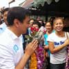 อภิสิทธิ์ หาเสียงสมุทรสาครเจอแดงป่วน (ไอเอ็นเอ็น)