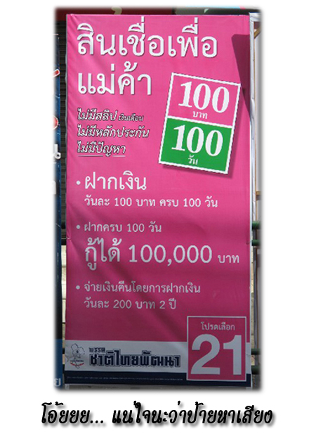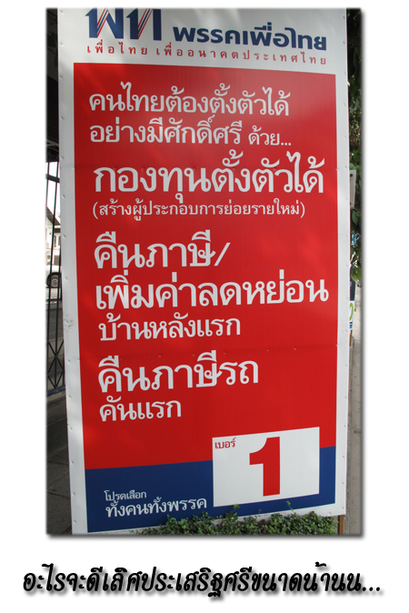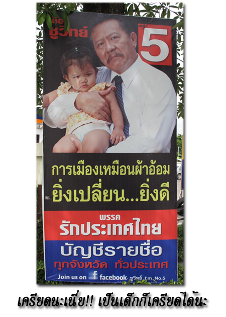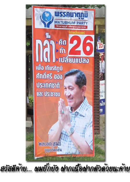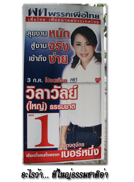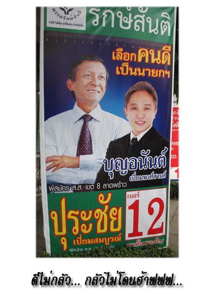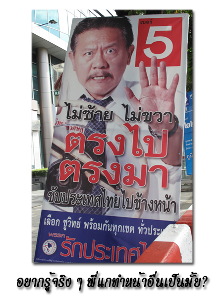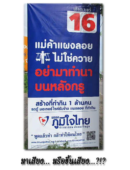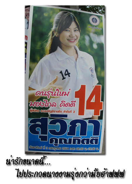 ว่าแล้วเราไปดูกันเลยดีกว่า ว่าป้ายหาเสียงของแต่ละพรรคเนี่ยจะเก๋กู๊ด ไอเดียกระฉูดกันขนาดไหน... อ๊ะ ๆ แต่ขอบอกไว้ก่อนว่าอย่าคิดมากนะคะ แซวกันขำ ๆ พอเป็นสีสันเลือกตั้ง ไม่ได้หวังจะทำร้ายใคร และหากทำให้บุคคลท่านใดไม่พอใจ ก็ ขออภัยมา ณ ที่นี้ด้วยจ้า...