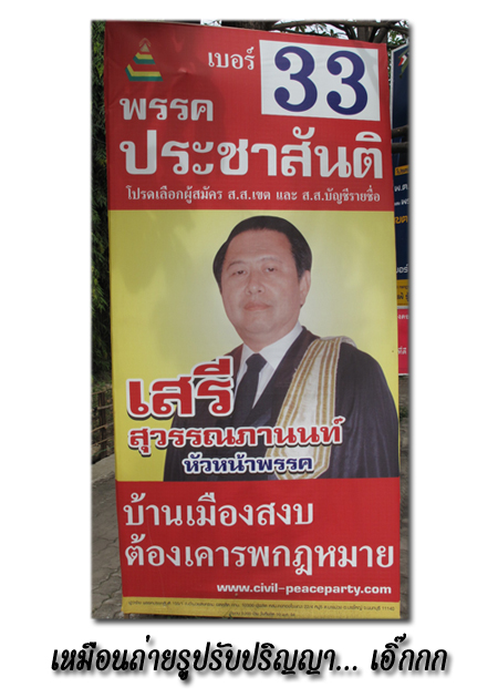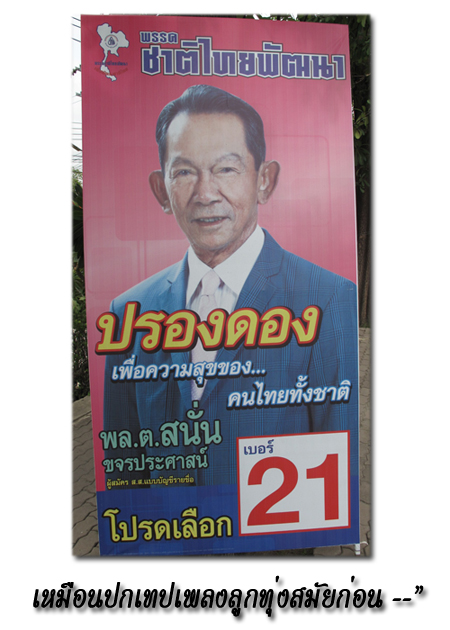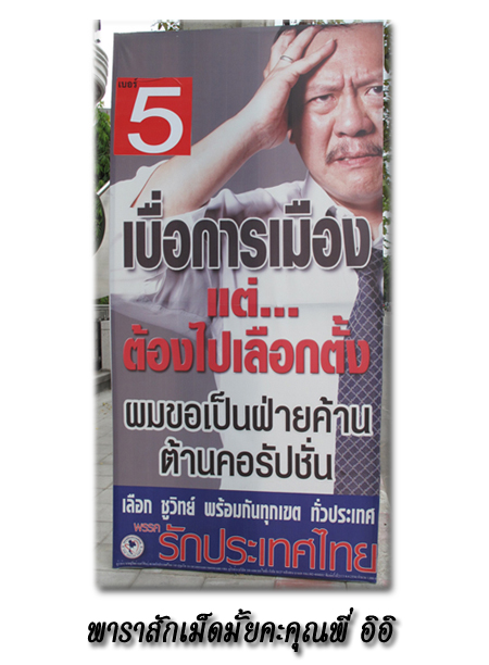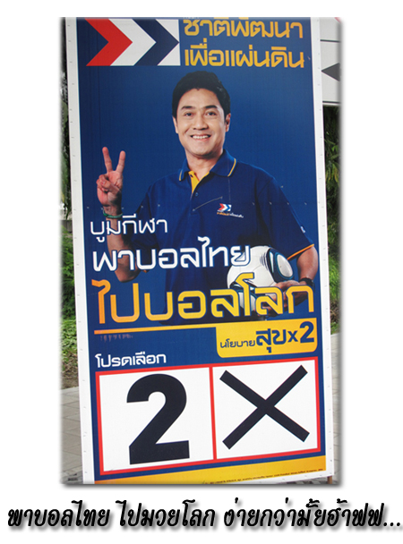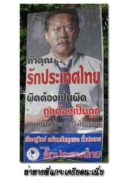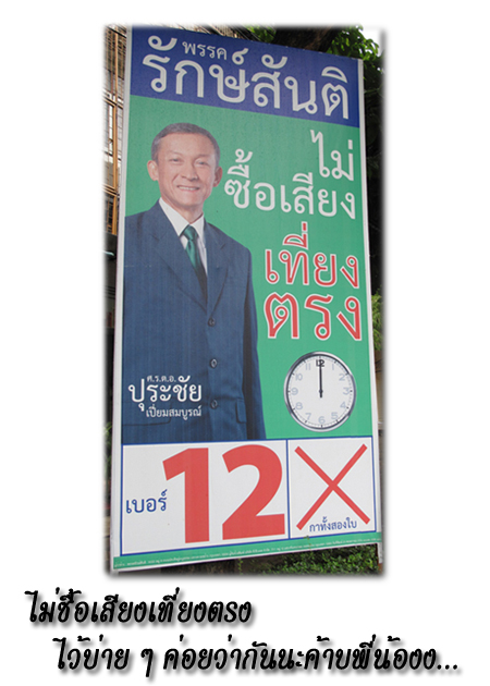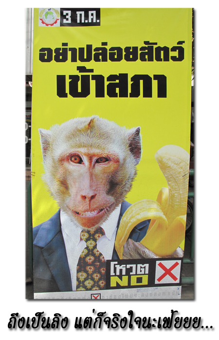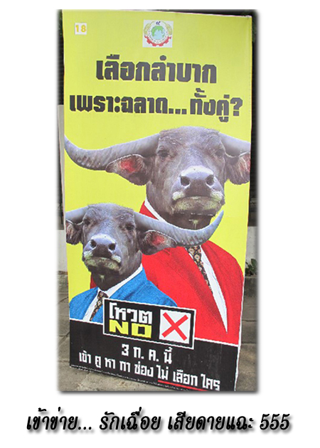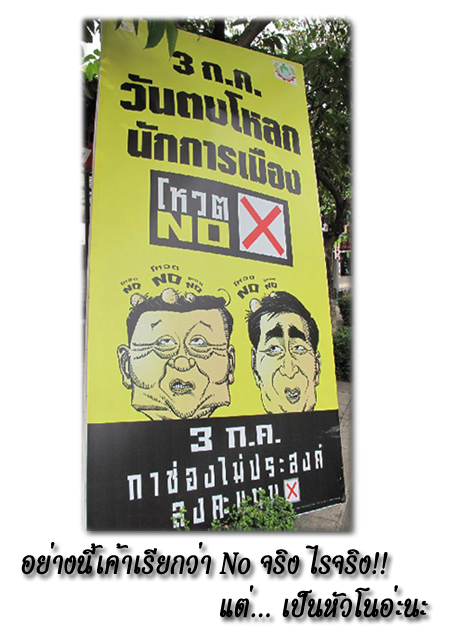 นับเป็นอีก 1 สีสันของการเลือกตั้งไทย ไม่ว่ายุคไหนสมัยไหนก็ตามสำหรับ ป้ายหาเสียง ของแต่ละพรรคการเมือง ปีนี้ก็เช่นกัน สีสันของป้ายหาเสียงแต่ละพรรคได้งัดนโยบายดีนโยบายเด็ดเอามาพรีเซนต์ลงบนพื้นป้ายโฆษณา แต่ที่เด็ดสุด ๆ คงต้องยกให้กับป้ายของกลุ่มพันธมิตรฯ ที่ไม่ใช่พรรคเลือกตั้ง แต่ก็ขอรณรงค์ "โหวตโน" โดยการเอาสารพัดสัตว์...มาประกอบจนหวิดจะโดนกกต.สั่งเก็บออกจนหมด