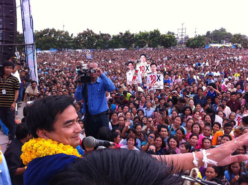 พร้อมกันนี้ นายอภิสิทธิ์ ยังย้ำไม่กังวลเรื่องการต่อรอง ถ้าประชาชนเลือกให้เด็ดขาด ปัญหาการต่อรองก็ไม่มี ซึ่งวันนี้ยังเป็นเรื่องระหว่างพรรคการเมืองเท่านั้น พร้อมระบุว่า ไม่ทราบว่า พ.ต.ท.ทักษิณ ชินวัตร อดีตนายกรัฐมนตรี ต่อสายหาพรรคใด แต่พรรคประชาธิปัตย์ ต่อสายกับประชาชน ซึ่งสิ่งที่พูดว่า ไม่เคยยุ่งเกี่ยวกับการเมืองนั้น ถามกลับไปว่า แนวคิดที่ว่า ทักษิณคิด เพื่อไทยทำ นั้น คืออะไร อย่างไรก็ตาม ย้ำว่าวันนี้ประชาธิปัตย์ ต่อสายกับประชาชน และจะได้ 250 เสียง อย่างแน่นอน