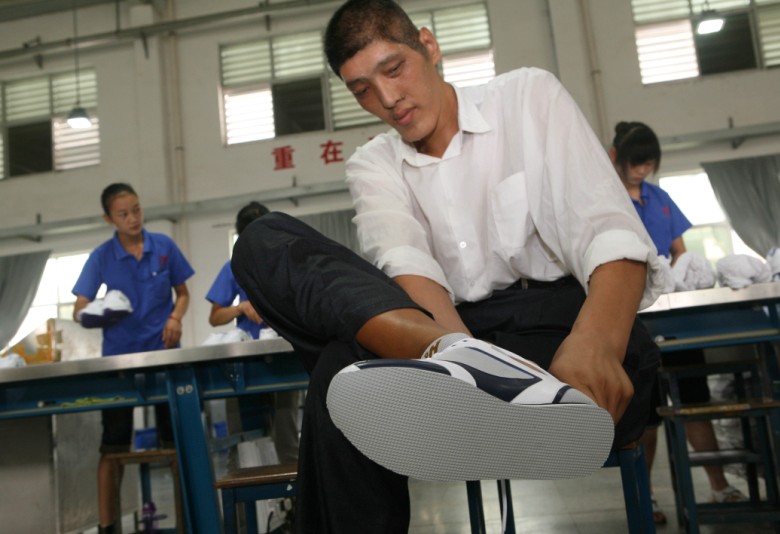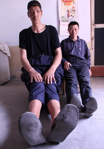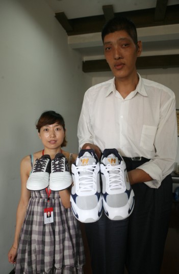 โดย หลิว เหวินเจ๋อ ชายวัย 34 ปี จากมณฑลหูเป่ย ของจีนคนนี้ มีขนาดเท้าที่ใหญ่มาก ตามขนาดลำตัวใหญ่ยักษ์ที่มีความสูงกว่า 222 เซนติเมตร ที่เกิดจากภาวะต่อมใต้สมองผลิตโกรทฮอร์โมนมากเกินไป ซึ่งนั่นทำให้เขาค่อนข้างจะลำบากในการใช้ชีวิตอยู่ไม่น้อย โดยเฉพาะในเรื่องของรองเท้า ที่ไม่ว่าจะพลิกแผ่นดินจีนหาก็ดูท่าว่าจะไม่มีใครผลิตออกมาขายเลย ดังนั้น เขาจึงไม่มีรองเท้าดี ๆ ใส่ ต้องตัดเย็บรองเท้าแบบเรียบง่ายขึ้นมาเองโดยตลอด แต่เมื่อสัปดาห์ที่ผ่านมา หลิว เหวินเจ๋อ ก็มีรองเท้าผ้าใบใส่เฉกเช่นคนธรรมดาทั่วไปแล้ว เมื่อบริษัทผลิตรองเท้าได้ตัดรองเท้าขนาดยักษ์ เบอร์ 60 ให้กับเขาโดยเฉพาะ และดูท่าว่า หลิว เหวินเจ๋อ จะดีใจไม่น้อยเลยล่ะ