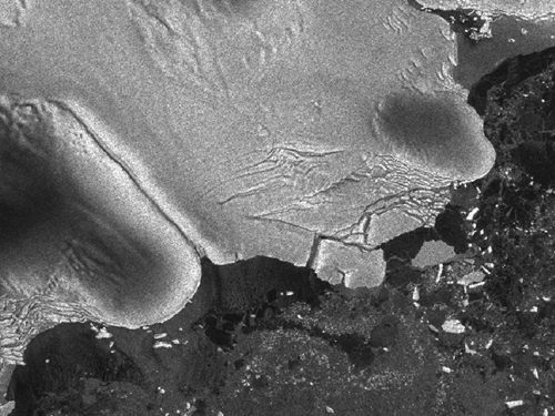 ภาพแผ่นน้ำแข็งในขั้วโลกใต้เมื่อวันที่ 12 มีนาคม (หลังเกิดสึนามิ 1 วัน)