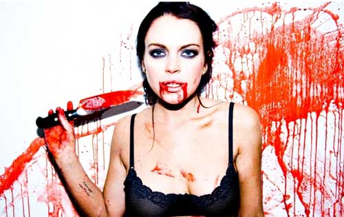 วาน นี้ (13 สิงหาคม) ฮอลลีวู้ดทูน่า เว็บไซต์ข่าวบันเทิงสหรัฐ ได้เผยแพร่ภาพ ลินด์เซย์ โลฮาน ดาราสาวคนดังที่มักมีข่าวออกมาสนั่นวงการฮอลลีวู้ดอยู่เสมอ ซึ่งคราวนี้เธอได้ถ่ายแฟชั่นให้นิตยสาร แทมแพ็ก (Tampax) แต่กลับสร้างความฮือฮาเพราะภาพแฟชั่นทีออกมานั้น เป็นแฟชั่นแนวเลือดสาด โดยเธอโพสต์ท่าประหนึ่งว่าเพิ่งก่อคดีฆาตกรรมเลือดสาดมาหมาด ๆ เพราะมีพร็อพครบเซ็ตไม่ว่าจะเป็นมีด ปืน พร้อมทั้งเธอยังทาสีแดงทั้งตัว เหมือนเป็นเลือดจริง ๆ