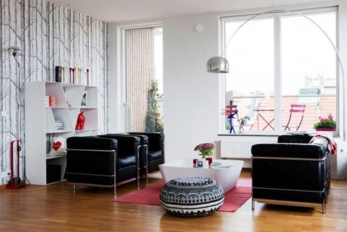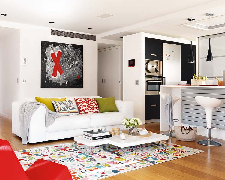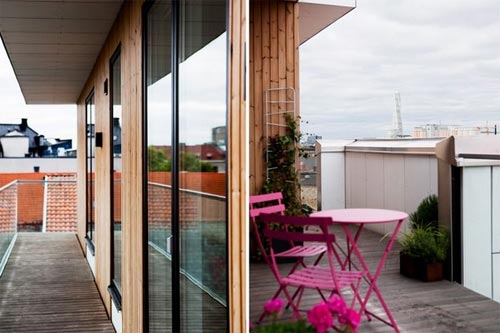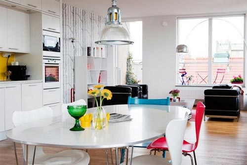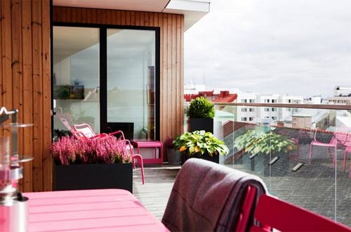 ตอนนี้ถึงเวลามาเติมสีสันในห้องอย่างจริง ๆ จัง ๆ หลังจากปูแบ็คกราวด์ด้วยสีโทนกลางเรียบร้อย เติมความสดใสด้วยสีสันสด ๆ ไม่ว่าจะเป็นสีที่เฉดตัดกันในโทนเดียวกัน เช่น น้ำตาลเข้มกับสีเบจอ่อน หรือใช้สีที่อยู่ตรงข้ามกันในวงล้อสี อย่างน้ำเงิน-เหลือง, แดง-เขียว เพื่อเติมความน่าสนใจและเป็นจุดดึงดูดสายตาให้กับห้อง ซึ่งสามารถเติมลูกเล่นได้มากมายโดยเฉพาะกับเฟอร์นิเจอร์ลอยตัว อย่างเก้าอี้ โซฟา โคมไฟ หมอนอิง กรอบรูป ฯลฯ เท่านี้ก็เป็นการเติมสีสันสดใสแต่ไม่ฉูดฉาดแสบตาให้กับห้องได้แล้วค่ะคราวนี้เราไปชมห้องสวย ๆ ด้วยสีสัน แต่ไม่แสบตากันดูบ้างดีกว่า ตั้งแต่ระเบียงไม้เรียบ ๆ แต่โดดเด่นที่ชุดเก้าอี้สีชมพูสด โซฟาขาวกับหมอนอิงหลากสี ห้องน้ำโทนส้ม-ขาว ฯลฯ แล้วคุณจะรู้ว่าแต่งห้องสวย ๆ ด้วยสีน่ะไม่ได้อย่างอย่างที่คิดเลยค่ะ:)