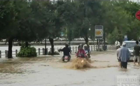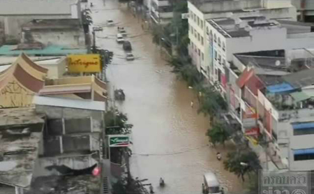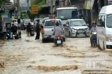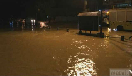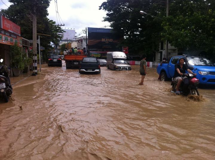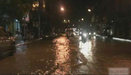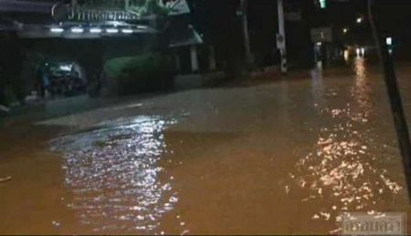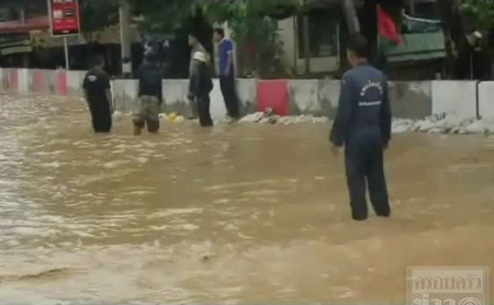 ถนนเชียงใหม่-ลำพูน น้ำทะลักท่วมหน้าสำนักงาน ททท.